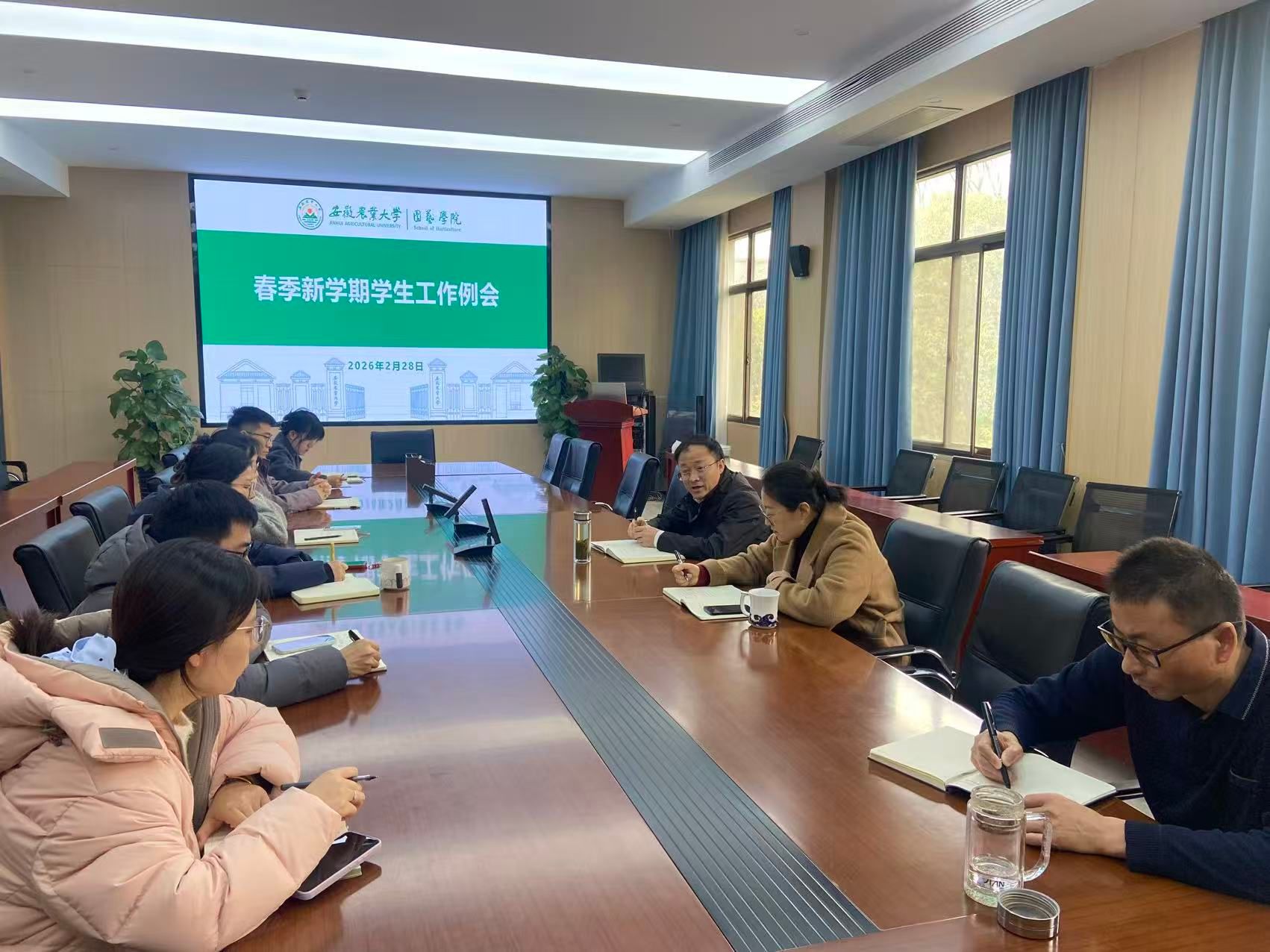 本网讯 2月28日下午,园艺学院在二教326会议室召开春季新学期学生工作会议,会议由学院党委副书记(主持工作)程玉峰主持,副院长袁凌云及学院全体专兼职辅导员、教务人员参加会议。