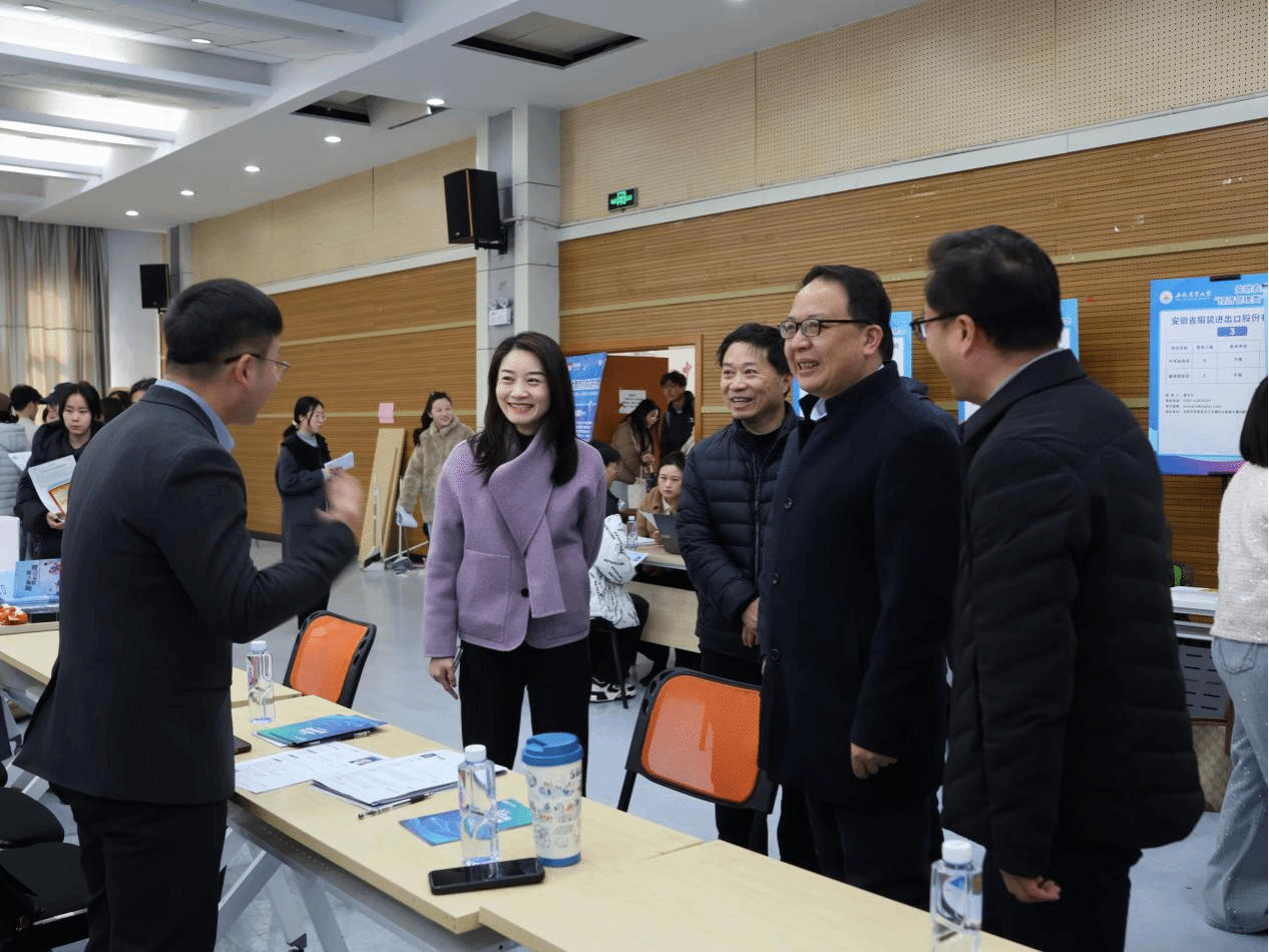 活动现场,校领导逐一走访各企业展台,与企业负责人深入交流,详细了解岗位需求与行业发展趋势,并寄语校企双方进一步深化产教融合、拓展合作空间,推动人才培养与企业发展的同频共振。在重点合作企业及校友企业展位前,校领导对双方合作成效给予充分肯定,对校友取得的行业成就表示赞赏,并邀请校友常回校交流,共促发展。同时,校领导鼓励毕业生积极应聘、把握机遇,将所学知识应用于实践,实现高质量就业。