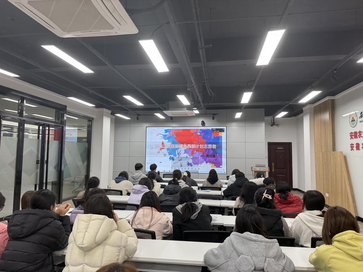 19日当晚,一场“西部计划志愿者宣讲分享会”也在“一站式”学生社区南区同时开展,学院邀请24届社会工作专业杨刘鑫(现服务于新疆第二师铁门关市迎宾街道办事处)、25届法学专业汪婕(现服务于肥西县上派镇人民政府)线上分享。两位志愿者结合自身基层服务经历,详细解读西部计划相关政策,讲述在基层奉献青春、收获成长的感人故事与深刻感悟,引导青年学子树立正确的择业观、就业观,进一步激发了同学们投身基层、奉献西部、服务社会的青春热情。