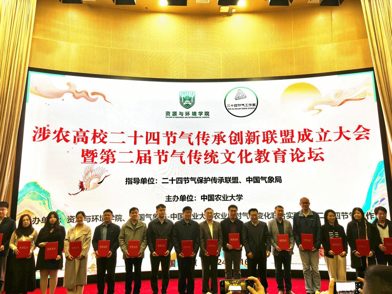 涉农高校二十四节气传承创新联盟由中国农业大学牵头成立,以二十四节气非遗传承为核心,立足涉农高校学科特色,推动传统文化与新农科人才培养、科研创新、社会服务深度融合,构建高校协同育人与文化创新平台。我院于2024年加入联盟,积极参与赛事组织、文化实践与教研共建,连续两年获评优秀组织单位,师生作品多次在全国创意设计大赛中斩获大奖。