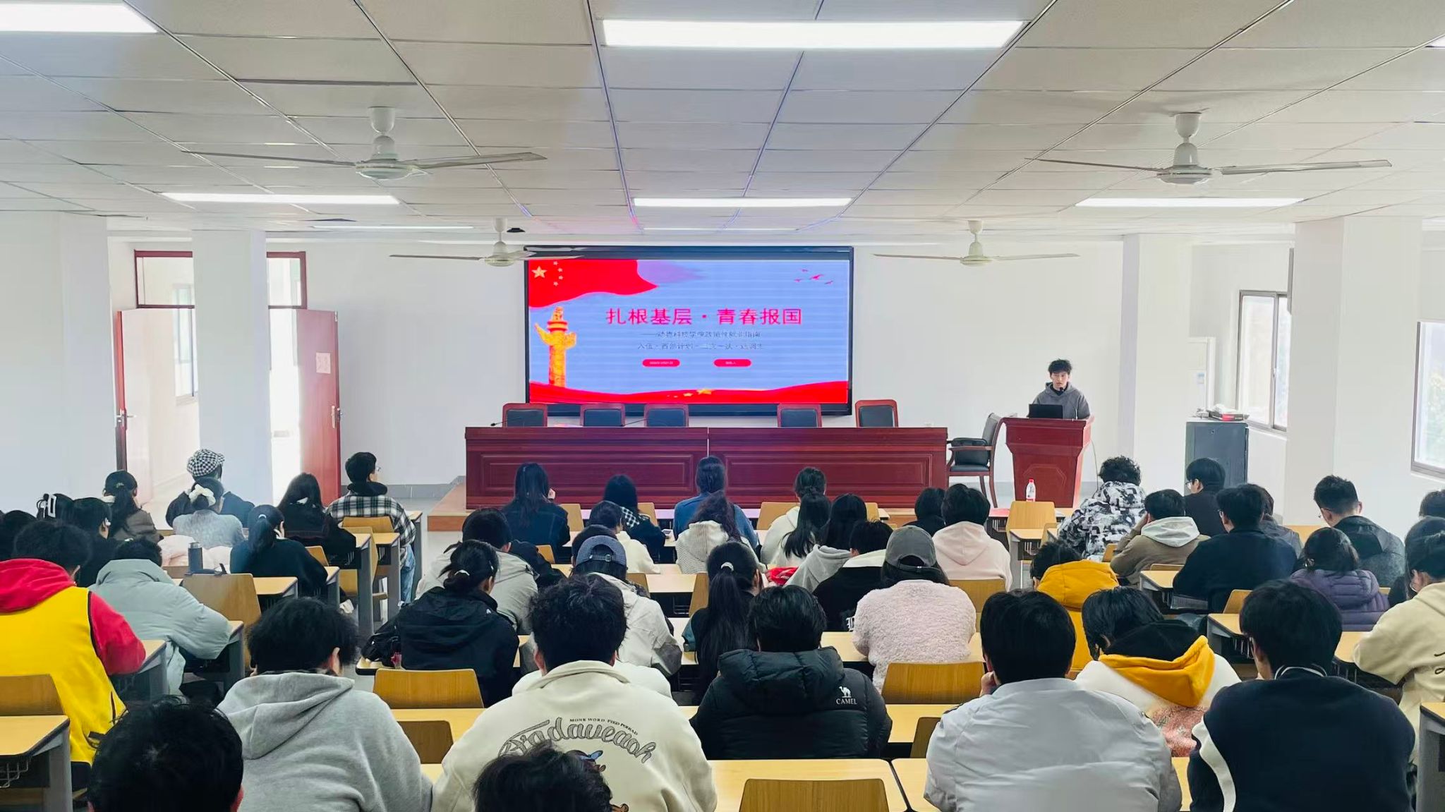 本网讯 3月21日,动物科技学院举办政策性就业专题宣讲会。学院党委副书记卢伟,专职辅导员郭佳、李文杰、侯坤,退役士兵代表经济管理学院2023级农林经济管理专业夏继、动物医学院2023级动物医学专业杨浩宇、茶叶学院2025级茶学专业陆文卓等参加了活动,学院2022、2023、2024级全体本科生及研究生参会。