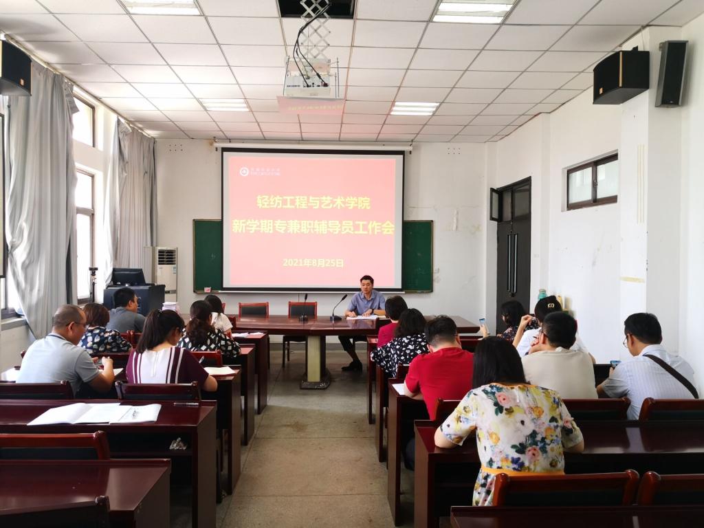 本网讯 8月26日,轻纺工程与艺术学院在轻纺楼四楼会议室召开新学期专兼职辅导员例会。本次会议由院党委副书记、副院长、纪委书记宋超主持,全体专兼职辅导员参会。