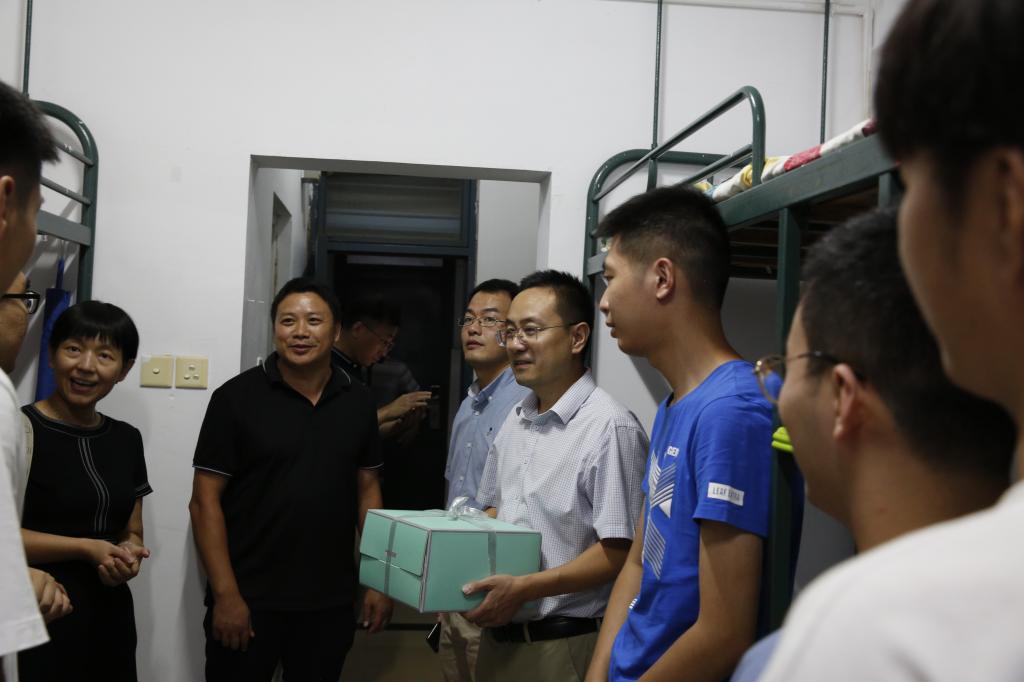 本网讯 9月9日,2021级人文社会科学学院本科新生报到的当天,恰逢2位新生生日,学院党政领导及新生辅导员一行带上校迎新工作组精心准备的生日蛋糕前往宿舍看望新生,送去诚挚的生日祝福,并与新生交流,勉励大家尽快适应大学生活、投入崭新的学习阶段。