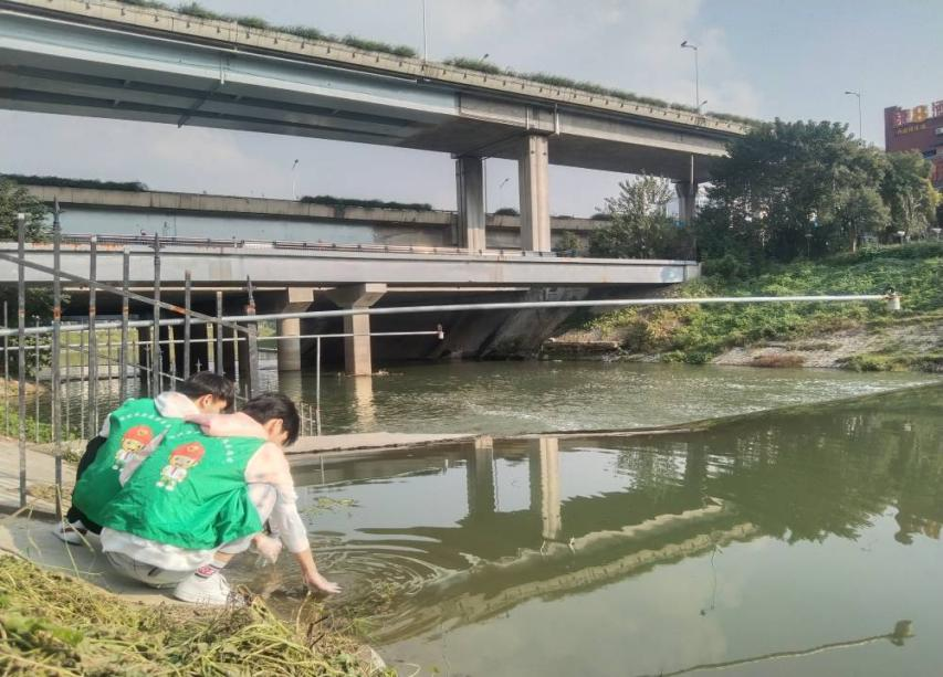 到达目的地后,由负责人讲解安全事项以及活动流程,分组并发放垃圾袋、手套等物资。活动伊始,志愿者们沿河岸清理垃圾,在确保安全的情况下采集水样。过程中,志愿者们随机调研南淝河附近居民,了解他们眼中南淝河近几年的变化以及其护河建议。此外,志愿者们还向社区小朋友介绍目前的水污染及垃圾分类现状、讲解护河小知识等,让青少年充分认识到环境保护的意义及重要性。