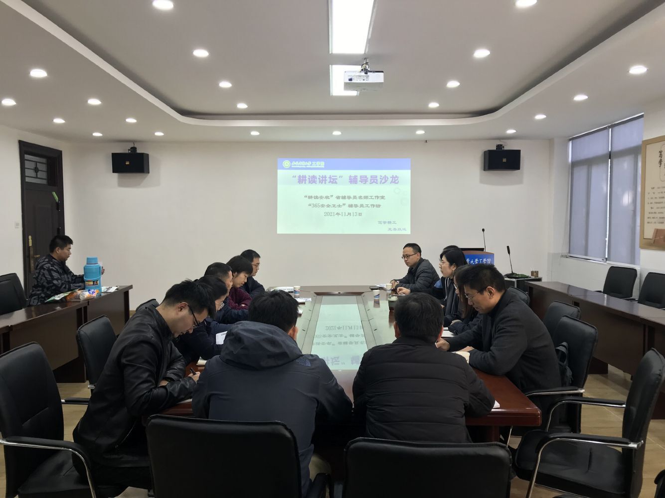本网讯 11月13日,由“耕读安农”省辅导员名师工作室、“365安全卫士”辅导员工作坊主办的“耕读讲坛”辅导员沙龙在工学院圆满举行。“365安全卫士”辅导员工作团团长、工学院党委副书记张国学,副团长、外国语学院党委副书记姬惠惠,校直相关部门老师、工作坊部分辅导员老师参加了本次沙龙活动。