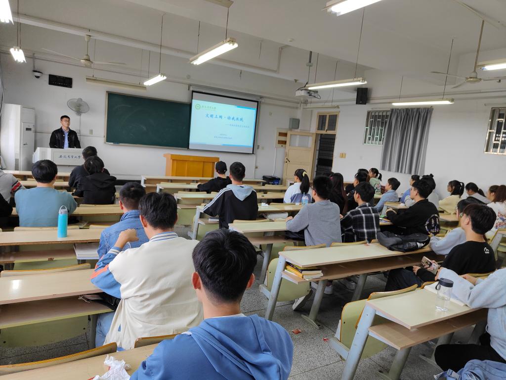 期间,各专兼职辅导员、研究生班主任通过课本领学、PPT展示和视频观看等多种方式向同学们讲述了校园内存在的一些有关网络道德实例、网络安全隐患和校园安全常识,让同学们受益匪浅。