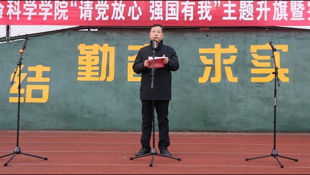 学院党委书记甘传鹤做总结讲话,他从三个方面对同学们提出期望:一是祖国至上,要有胸怀国家的大境界;二是时代召唤,要有肩扛千钧的大担当;三是自我赋能,要有脚踏实地的大作为。广大青年要以时不我待、问鼎争先的进取精神,为祖国的繁荣昌盛、为人类的共同进步助力出彩!