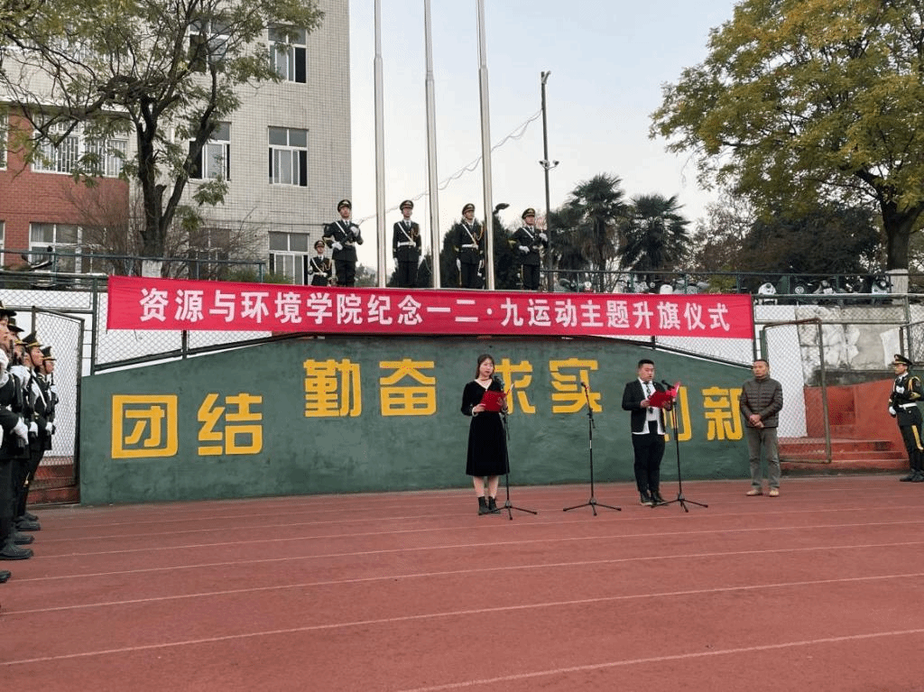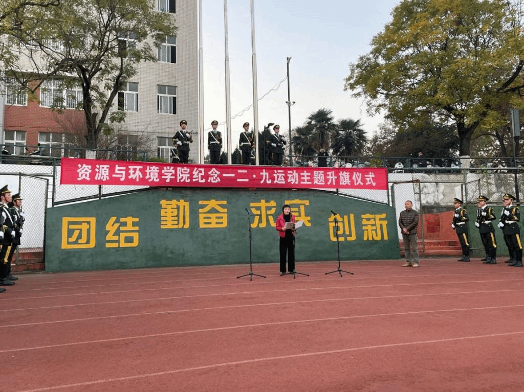 本网讯 12月6日晨,资源与环境学院在校第一运动场举行“纪念一二•九运动”主题升旗仪式。校党委学生工作部、武装部、学生处(学生资助管理中心)领导姚莉、刘柳、周涛出席仪式,学院党委书记王琼、专兼职辅导员和全体学生参加了活动。升旗仪式由学院党委副书记、纪委书记、副院长姚洪章主持。