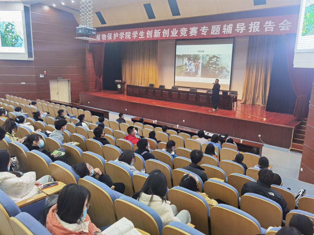 本网讯 12月7日晚,植物保护学院在图书馆第一报告厅举办学生创新创业竞赛专题辅报告会,校创新创业学院张璐、丁朝阳受邀作专题培训。学院学科竞赛及创新创业兴趣小组成员参加会议。会议由学院党委副书记、纪委书记、副院长汪小强主持。