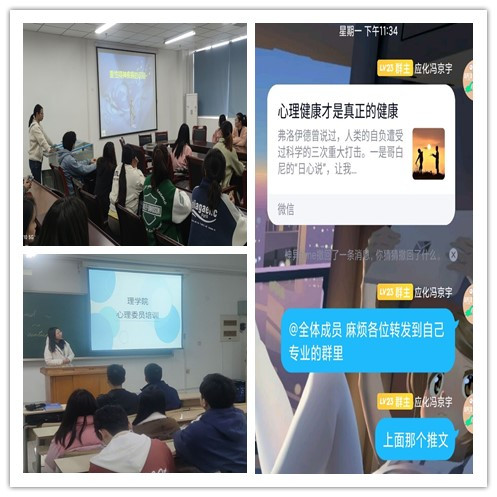 本网讯 为贯彻落实《教育部关于加强学生心理健康管理工作的通知》文件精神,帮助我院学生掌握心理健康相关知识,切实提高学生心理健康水平,理学院积极响应我校《关于举办第十届心理文化艺术节系列活动的通知》要求,围绕“1+2+3+n”的总体思路,积极创造条,通过学院、班级、寝室三级网络系统开展内容丰富、形式多样的心理健康教育系列活动。