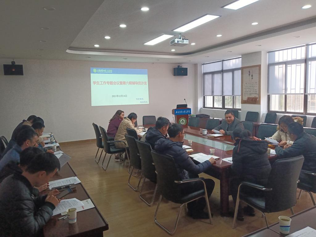 本网讯 12月14日上午,工学院召开学生工作专题会议暨第六期辅导员沙龙,全体专兼职辅导员参加会议。院党委副书记张国学主持会议。