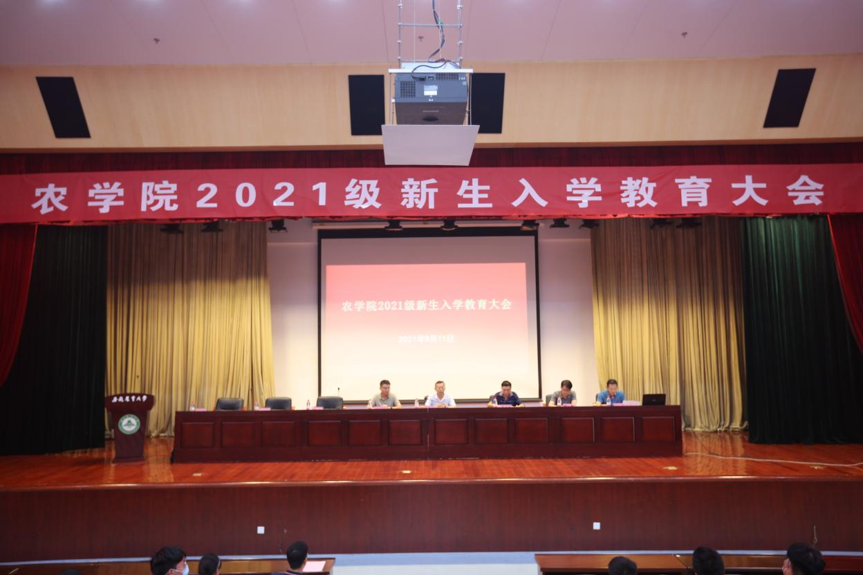 9月11日下午,农学院2021级新生开学典礼暨入学教育在图书馆一号报告厅隆重举行,农学院党委书记管志权,院长李金才,院党委副书记、纪委书记、副院长吕大鹏,副院长王晓波、副院长宋贺,各系部主任,办公室人员、新生辅导员、2021级本科、专升本、研究生全体480名学生参加本次典礼。大会由吕大鹏主持。