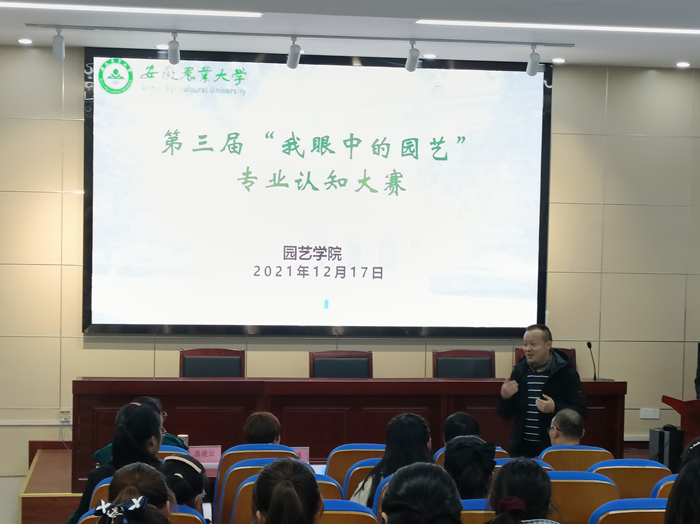 本网讯 12月17日下午,园艺学院第三届“我眼中的园艺”专业认知大赛在二教245报告厅成功举行,学院党委副书记、副院长、纪委书记鄢高翔、观赏园艺系主任王冬良、果树科学系主任衡伟、设施工程系主任袁凌云以及蔬菜科学系主任陈国户出席并担任本次比赛的评委。