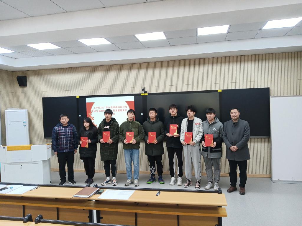 为树立典型,表彰先进,促进学院三风建设,12月20日中午,工学院在三教101会议室举行2021年先进班级和红旗团支部表彰暨“三风”推进座谈会。院党委副书记张国学、团委书记刘灿老师,各班级主要学生干部参加会议。会议由辅导员孙亮亮主持。