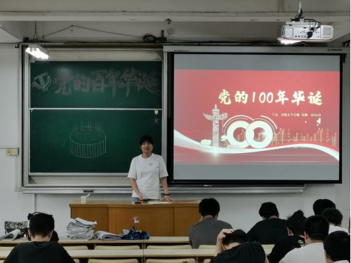 会上,各辅导员采用宣讲,看视频等形式,带领同学们一起回顾中国共产党成立以来的奋斗历程,让大家深刻理解1921年中国共产党的诞生是中国历史发展的必然,是中国共产党在多灾多难的近代中国,带领全国人民进行了长期的、艰苦卓绝的斗争,付出了巨大的牺牲,使中国走上了独立富强的道路。一幅幅年代久远的图画,一个个精彩的故事,一首首激情的歌曲,诠释着先辈们坚韧不拔、顽强拼搏、艰苦奋斗、不怕牺牲,为革命事业勇于献身的大无畏精神,增强了同学们热爱党、热爱祖国的情怀,更让他们认识到了努力学习、自强奋发的重要性。各班级结合学生每日健康打卡、考试诚信教育、防范网络电信诈骗、心理健康教育、宿舍用电安全等内容纳入班会内容,教育引导学生诚信考试、健康生活。