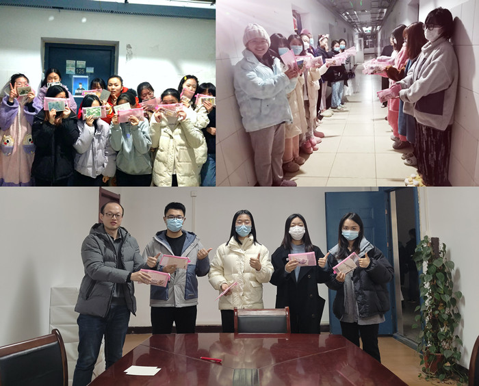 自活动开展年以来,各毕业班级通过主题班会、走访学生宿舍、集体吃生日蛋糕等方式进行爱心慰问。本次发放的爱心礼包主要有考试文具袋、手写祝福语、德芙巧克力。礼包虽小,却寄托着学院对2022年考研学子的满满祝福。