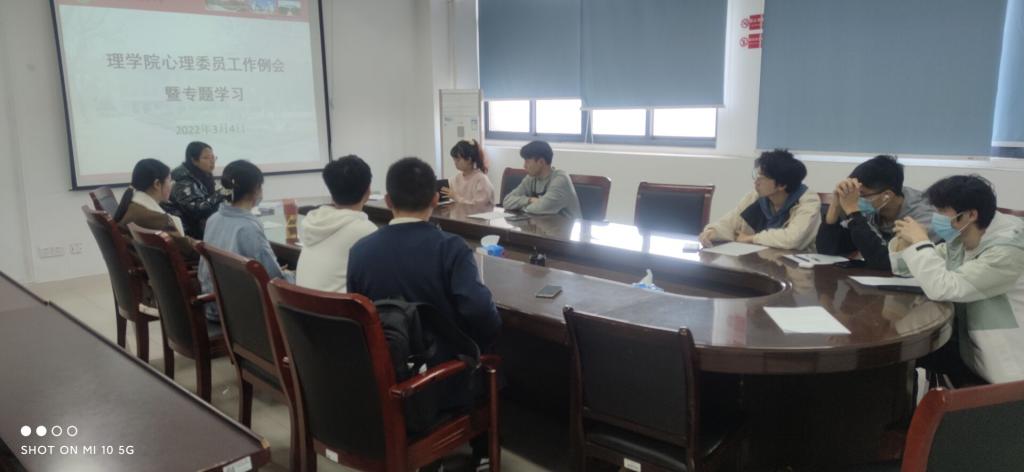 本网讯 新的学期,为使心理委员明确自己的工作职责,更好开展心理健康教育工作,3月4日中午,理学院在641会议室召开心理委员工作例会暨专题培训,学院二级心理辅导站联络员、学院心联部及21级心理委员参加会议。