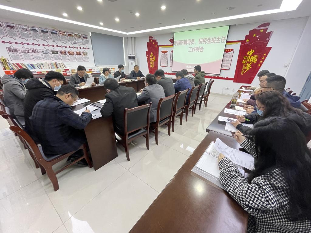 会议传达了合肥市《关于在肥高校、中职学校严格执行封闭管理的通知》、学校《关于进一步从严从紧加强学校疫情防控工作的通知》等文件精神,通报了近期每日健康打卡、应征入伍、双优生评选、毕业生就业以及网络舆情、电信诈骗等情况,并对学院全体辅导员、班主任就日常管理、学风建设等相关工作再深入。