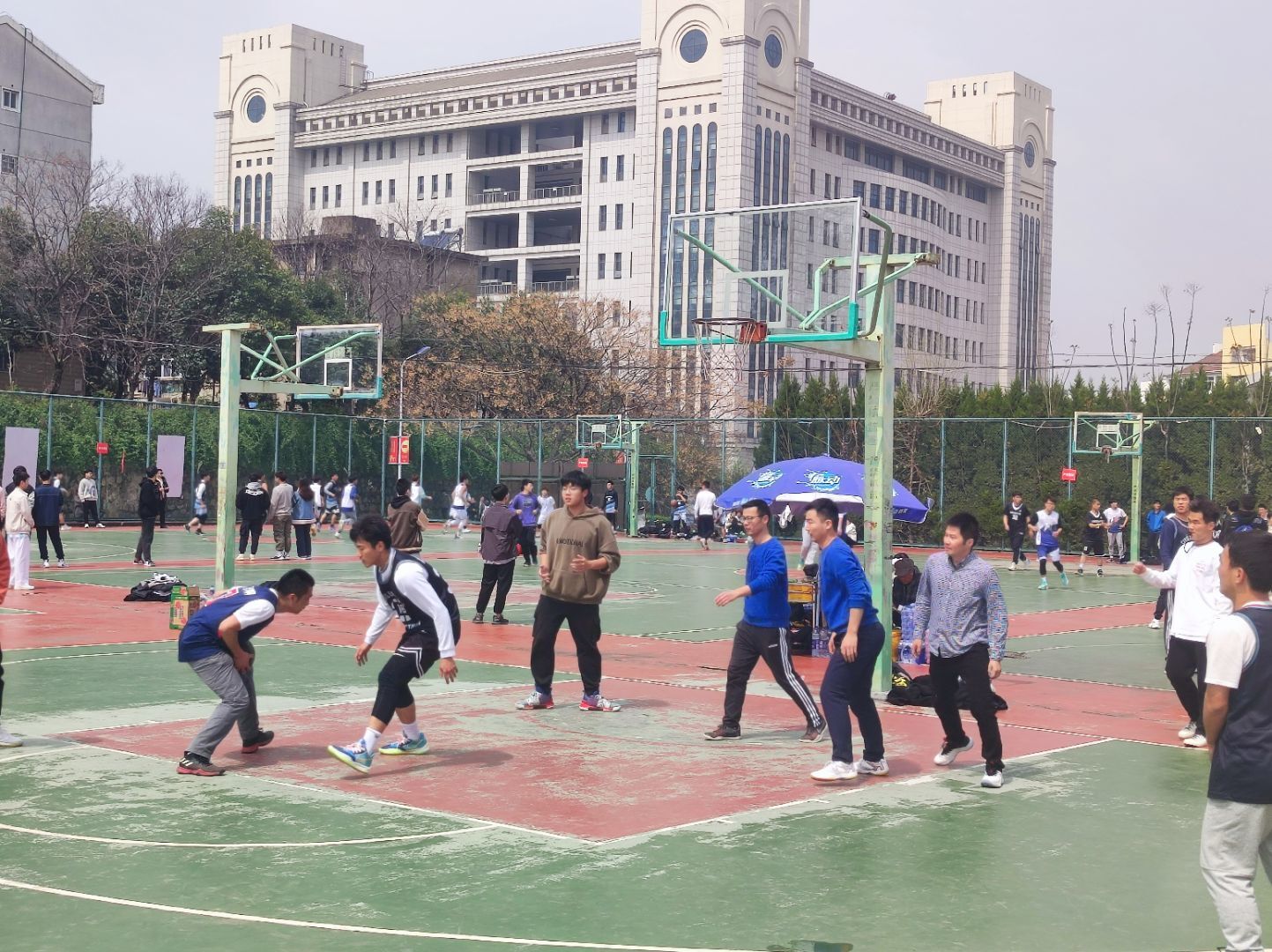 本网讯 阳春三月,春暖花开。为进一步丰富我院学生的课余文化生活,增进师生之间的情感交流,展现我院师生健康、和谐、积极进取的精神风貌,3月23日中午,工学院在第二运动场组织教职工与19土木专业学生进行了一场篮球友谊赛。