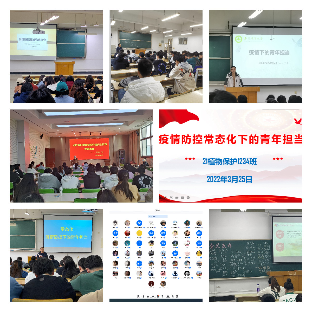 本网讯 2022年初,新冠疫情犹如“倒春寒”,在全国各地再次掀起波浪。面对复杂严峻的疫情防控形势,并严格落实学校关于疫情防控的最新要求,进一步厚植学生爱校荣校的观念,切实增强学生思想和行动自觉,植物保护学院本科生31个班级深入开展了“疫情防控下的青年担当”主题班会。