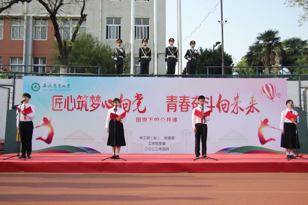 “师说”环节,学院刘素梅、刘微、侯文慧三位教师饱含着对学校、学院的深情,朗诵原创诗歌《安农工学人 永远在征程》(作者:刘素梅教授),回顾了学院64年的办学历程,展现了工学院师生机械强农、奋斗有我的担当奋进状态,更激励着全院师生砥砺奋进、实干笃行,为特色高水平农业大学建设贡献工学智慧和力量!学生代表深情朗诵《请党放心 强国有我》,表达出新时代青年青春心向党、为实现中华民族伟大复兴中国梦不懈奋斗的坚定决心。