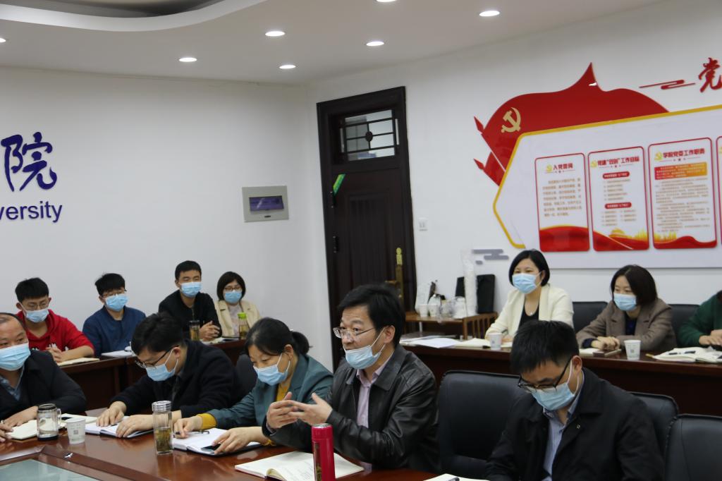 学院党委副书记张国学结合实际,从网络舆情的预判、网络阵地管理以及具体问题的应对等方面开展交流分享,进行话题导入。随后,学院“双带头人”伍德林老师、杨智良老师和辅导员刘灿老师围绕主题,分别从基层教学组织、教师和学生个体以及师生群体等角度,围绕疫情下的师者担当、课程改革、网络阵地、信息茧房、心理行为等内容交流了认识、思考和困惑。