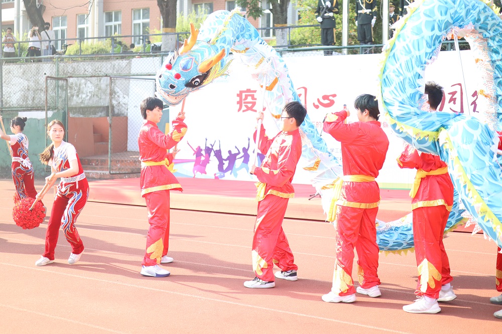 2020级汉语言文学专业黄勖桐同学作《青春抗“疫”,绽放生命》的主题演讲,结合自己新冠肺炎疫情防控以来的所见所闻,分享了自身的切身感受,呼吁我们新时代青年要牢记总书记嘱托“敢于奋斗不放弃、敢于斗争不退缩、敢于前进不止步”;学院应用心理系系主任王东以《塑造阳光心理,成就美丽人生》为题主讲国旗下的公开课,深刻论述塑造阳光心理是自我完善的过程,希望青年大学生要学会改变态度、学会自我调适,保持阳光心态,认真对待生命中的每一天;刘艺、朱鑫源、卢明月、张文杨等4位同学结合早安人文,以《青春中国》为主题开展集体诵读,他们慷慨激昂,铿锵有力,荡气回肠地叙述着中华民族的风雨和沧桑,用青春的气息昭示着祖国的繁荣与昌盛,表达出了青年学子对党、对祖国深沉的爱意;体育部岳保住老师和舞龙队的同学带来了精彩的非遗文化节目表演——《龙腾盛世》,充分展现出了我校大学生蓬勃向上的精神面貌与健康体魄,引发全场师生热烈的掌声。
