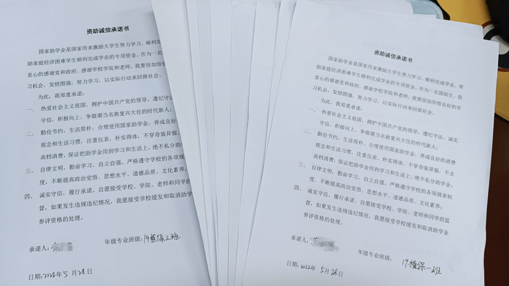 通过开展资助诚信主题征文活动,积极组织各班级国助生结合个人受资助情况和学习生活情况,认真选题,精心准备,旨在进一步厚植国助生感恩自强的情怀,加强学生的诚信和安全教育,共同编织学生健康成长成才的安全防护网。此外,学院还实施精准帮扶,对家庭突遭变故的学生发放困难补助,给学生及学生所在的家庭带来温暖和力量。