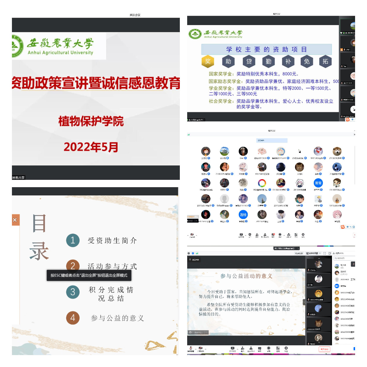活动期间,学院积极组织各年级辅导员、班级骨干,通过线上线下联动、多措并举的方式开展主题教育活动。其中,通过讲座、宣讲、解读的形式,向学生详细解说了国家和学校的资助和奖励政策,鼓励同学们在校期间勤奋学习,努力表现,争取期末考取优异的成绩;围绕2022届生源地信用助学贷款毕业生还款确认工作做了认真提醒和相关布置,旨在利用毕业确认工作环节告知贷款学生应承担的还款义务以及违约后果,促进学生树立诚信观念、法律意识和契约精神,及时履行还款义务;针对助学贷款等播放了宣传短视频,普及了资助政策和诚信相关知识;就资助诚信为主题组织同学们签署承诺书,明确国家助学金的合理使用途径以及在校期间的学习目标,做一名常怀感恩、自强、奋斗的大学生。此外,以学校近期发生的数起电信诈骗案例为警示,结合学院印发的《植物保护学院疫情防控和防诈骗警示教育案例汇编》手册,向同学们通报了常见的网上诈骗类型手段和内容,教育引导广大同学牢记防范网络电信诈骗“六个凡是”、“七个一律”和“十个守则”,加强自我保护意识,自觉遵守相关法律法规,自觉承担起大学生应尽的责任和义务,诚信自律。