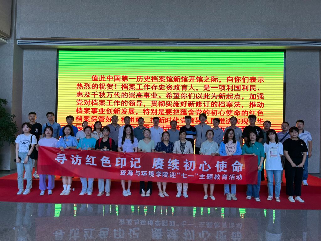 本网讯 为进一步坚定理想信念,深切感受“初心”温度,凝聚“使命”力量,6月17日上午,资源与环境学院组织师生党员赴安徽省档案馆开展“寻访红色印记· 赓续初心使命”——迎“七一”主题实践活动。学院近40名党员参加活动。