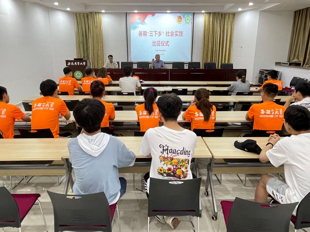 仪式上,姚洪章介绍了2022年暑期“三下乡”社会实践活动的筹备情况、活动内容和日程安排。他指出,社会实践是青年学子做到知行合一,学以致用的重要途径,要充分认识社会实践重要性,通过积极参与社会实践活动,实践团成员将真正有所收获,得到成长,承担起时代赋予的历史使命和责任担当。他还详细询问社会实践队伍在工作开展过程中遇到的困难和问题,鼓励实践团成员坚定信念,利用宝贵的实践机会,真正服务基层、服务群众,做到有所思考、有所收获。最后,他还就安全问题做了强调,要求带队教师和全体队员保持高度警惕,确保师生人身、财产安全。