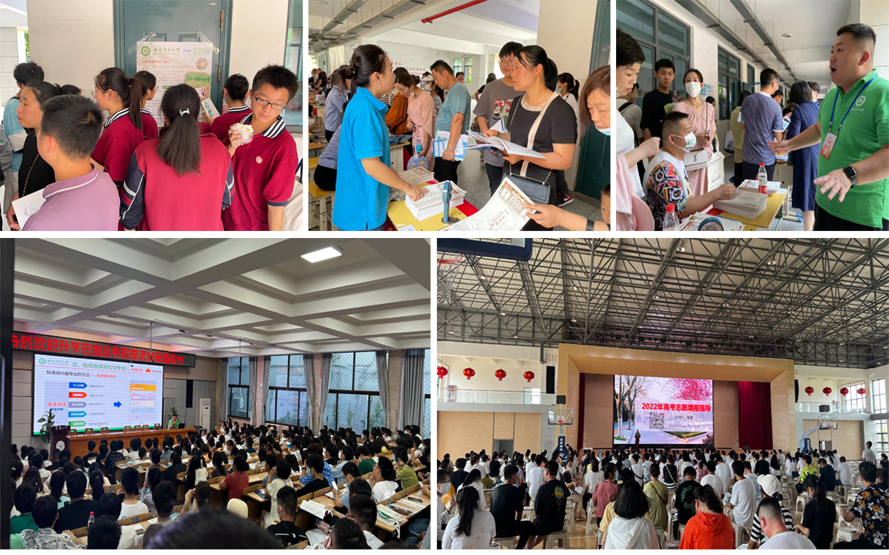 他们顶着炎炎烈日,以饱满的热情和高昂的精神状态深入高中12所(省级示范高中10所,我校优质生源基地7所),回访优质生源基地,进行2022年高考招生宣传,举行专场宣讲会3场,赠送喜报6份,与千余名考生及其家长面对面,介绍我校基本情况、特色与优势、招生预估情况和转专业政策,就院校、专业、区位选择进行深入交流,发放《安徽农业大学2022年本科招生宣传册》、《安徽农业大学2022年本科招生简章》近千份,积极引导考生和家长登录安徽农业大学本科招生网或拨打学校招生热线进行详细了解和咨询,并现场指导学生填报志愿。