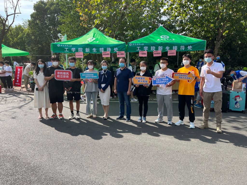 学院提前谋划,为2022级全体新生专门设计制作了印有学校校徽和“机械强农 奋斗有我”字样的蓝色T恤衫,学院领导在迎新现场向新生赠送了T恤衫,激发了新生爱校荣校意识和专业学习兴趣。同学们纷纷表示,愿以吾辈之青春,强农业之根本,谱振兴之华章。