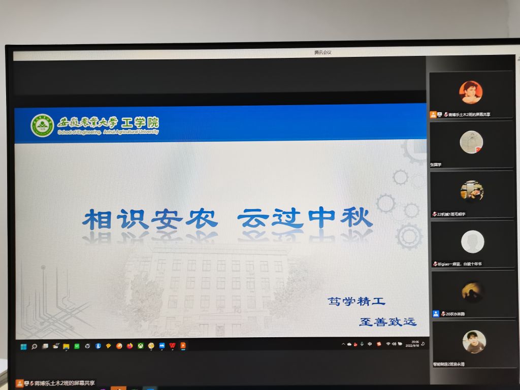 晚上,学院举办“相约安农 云过中秋”主题活动。活动播放了各专业宣传片,全体专职辅导员与新生进行了线上互动交流,活动介绍了校史院情,希望全体新生只争朝夕、不负韶华,尽快熟悉学校、融入学院,怀揣梦想与希望,在农大书写人生新篇章。