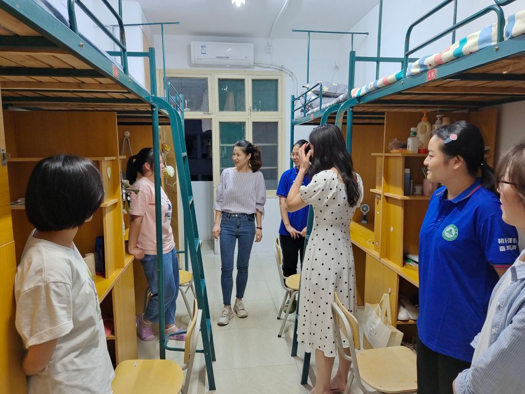 9月9日晚,学院党政领导带领全体专职辅导员分组深入走访2022级新生宿舍,与他们亲切交流,增进学生对学院、班级的熟悉程度。领导老师们不厌其烦的叮嘱同学们树立安全意识,防范电信诈骗,过好集体生活,在大学期间跑出属于自己的好成绩。