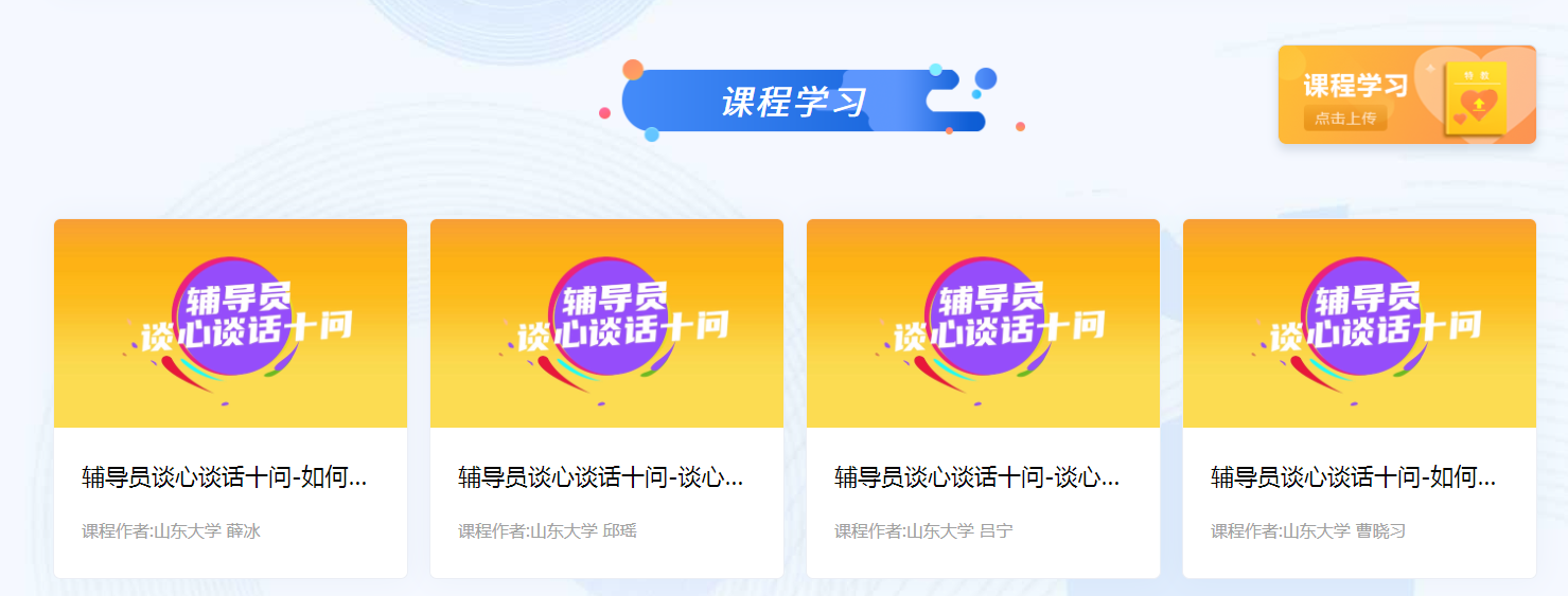 辅导员是开展大学生思想政治教育的骨干力量,提升辅导员的理论水平、职业能力和专业素养将有利于推动思想政治教育高质量发展。高校辅导员队伍能力提升大数据赋能平台是集全国优秀辅导员、学生工作典型案例等为一体的辅导员成长赋能平台。目前,该平台已更新升级,进一步丰富了学习资源模块。包括政策指南(含时政聚焦、重要论述、重要文件和工作指南)、课程学习(辅导员谈心谈话十问)、典型经验(学生辅导案例、工作精品项目、先进事迹)和榜样在线(最美高校辅导员)。请各学院通知辅导员老师们在利用该平台做好个人信息维护的同时,充分利用相关资源提升个人职业素养。
