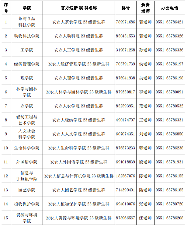 十二、咨询交流。为更好帮助新同学解答问题,各学院新建了官方QQ群,有问题请通过官方QQ群咨询学院负责老师,注意不要随意加入其他群,谨防上当。