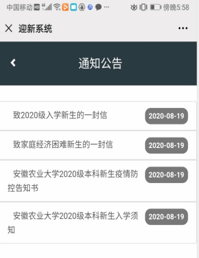 点击“新生报到”,登录“安徽农业大学新生自助报到系统”(系统将于9月7日上午9:00开通),填写完善个人及家庭信息、选择宿舍、完成床上用品是否订购、绿色通道、上传承诺书(疫情防控告知书的第二页承诺书,签字拍照上传)等信息采集,以备学校在您入校前进行统计,方便迎新服务安排。操作流程如下: