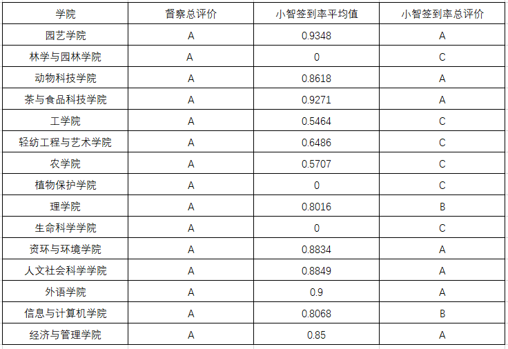 2021上半年各学院报送晚自习考勤情况公示(第六周)