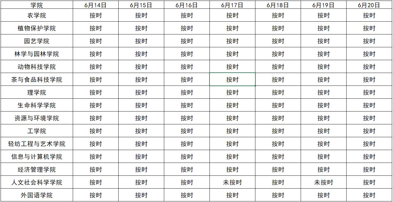 6月14日日至6月20日各学院报送每日信息情况公示