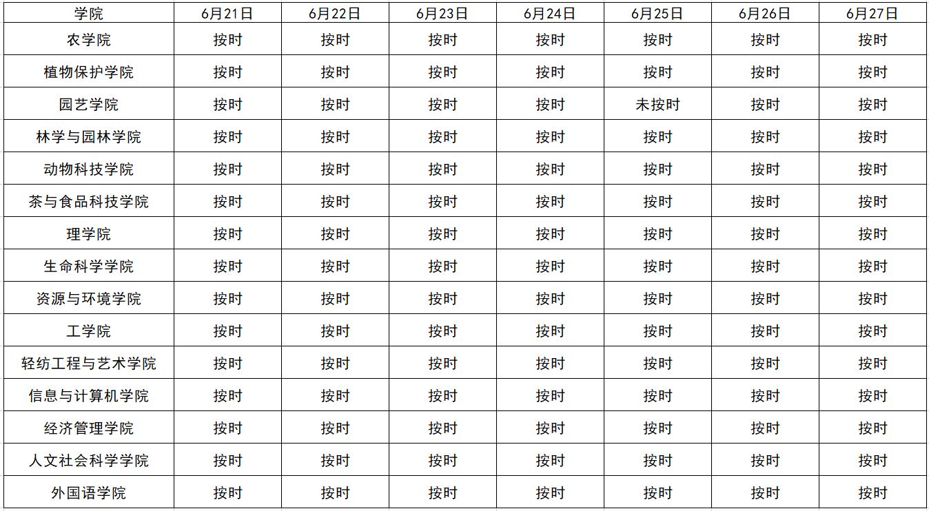 6月21日日至6月27日各学院报送每日信息情况公示