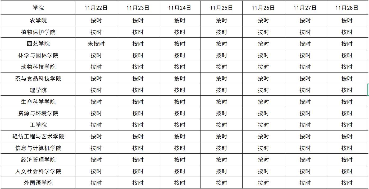 11月22日日至11月28日各学院报送每日信息情况公示
