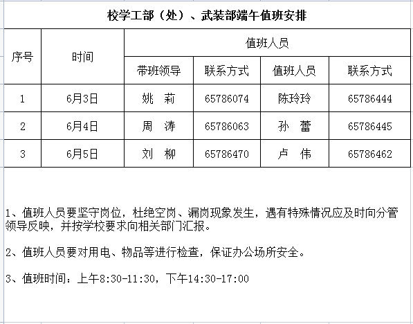 校学工部(处)、武装部2022年端午节值班安排