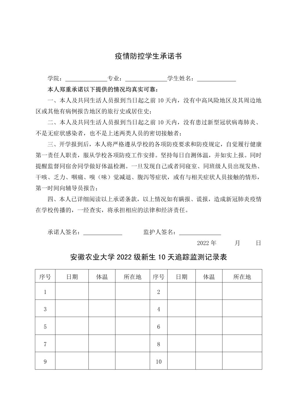 【迎新】新生疫情防控须知、承诺书