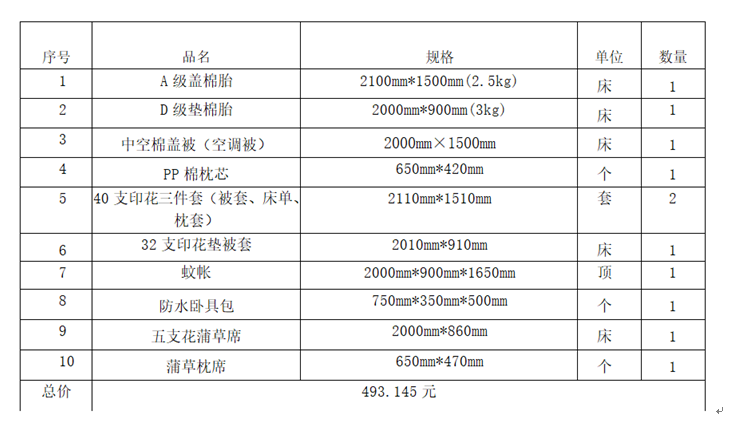 附件:2022年度学生公寓用品一览表(总价493.145元)
