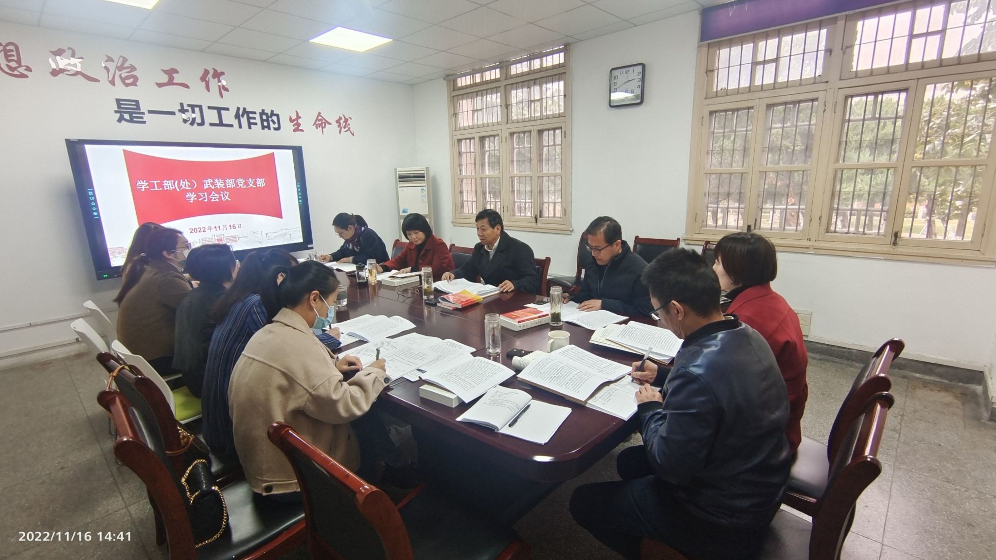本网讯 11月16日下午,学生处党支部召开“一月一主题”学习研讨会,校党委副书记裴树东以普通党员身份参加会议,会议由党支部书记姚莉主持。