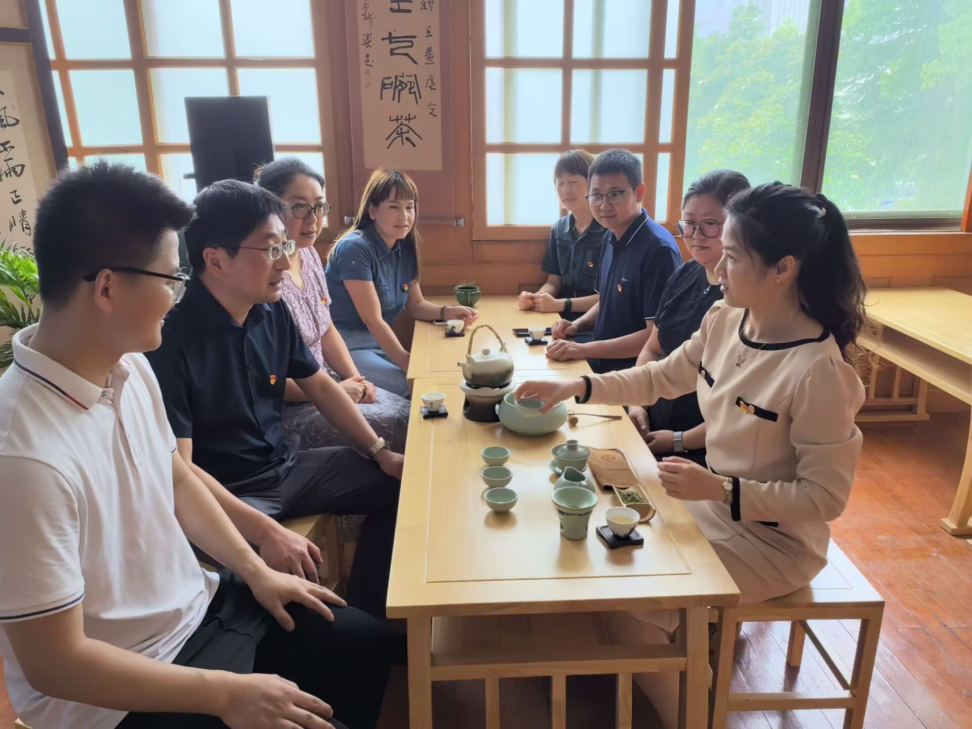 随后,大家观看了茶文化展示,了解了中国传统文化之茶文化,体悟了茶道精神与茶艺之美。茶叙期间,与茶与食品科技学院学工队伍开展座谈交流,围绕辅导员队伍建设、毕业生工作、征兵工作等学生思政工作进行了深入地交流,并希望进一步发挥茶文化教育赋能和人文素养知识增值的双向奔赴,不断开创新时代思政教育新局面。(图文/李婧 编辑/李鑫 审核/任琪)