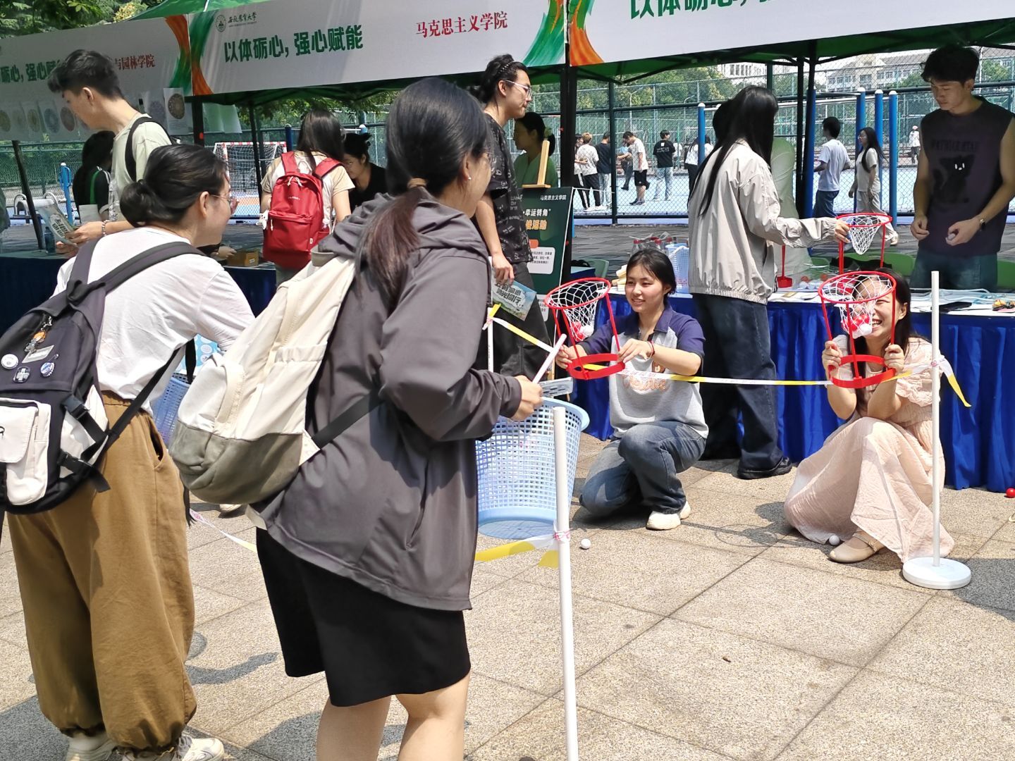 跃动中强健体格 工学院“顶篮接球,巧手争锋”趣味接球活动,同学们化身灵动的“运动达人”,在运动中锻炼手眼协调能力,尽情挥洒汗水,释放青春活力;“抛开烦恼——压力清零计划”打卡活动,同学们踊跃参与,大家手持羽毛球,目光专注地投向“烦恼洞”,手臂挥动间,仿佛将心中的焦虑、疲惫等烦恼忧伤一同掷出,在欢声笑语中拥抱轻松与畅快,为心灵卸下负担。