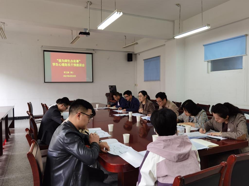 为进一步强化党史学习效果,增强为师生服务的宗旨意识,把办实事开新局贯彻工作始终,2021年4月20日至30日期间,学工部(处)赴各二级学院组织开展心理危机干预工作调研座谈会暨专题培训。本次调研分为东、西片区进行,各学院分管学生工作负责人、二级心理辅导站负责老师等全程参加。工作调研暨专题培训由学工部(处)刘柳主持。