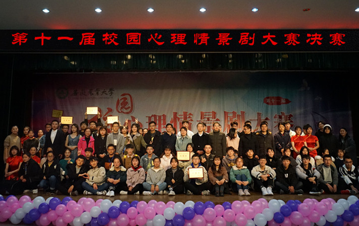 12月13日晚,我校第十一届校园心理情景剧大赛决赛在欣苑四楼多功能报告厅举办。研究生院副院长宋燕平、宣传部副部长夏成云、招生就业处副处长沈兆梅、组织部副处级组织员江海波、国际交流合作处副处长孙裴、校团委副书记张志平、校医院副院长洪涛担任决赛评委。校学工部(处)负责人、各学院心理联络员老师等350多名师生观看了本次大赛。